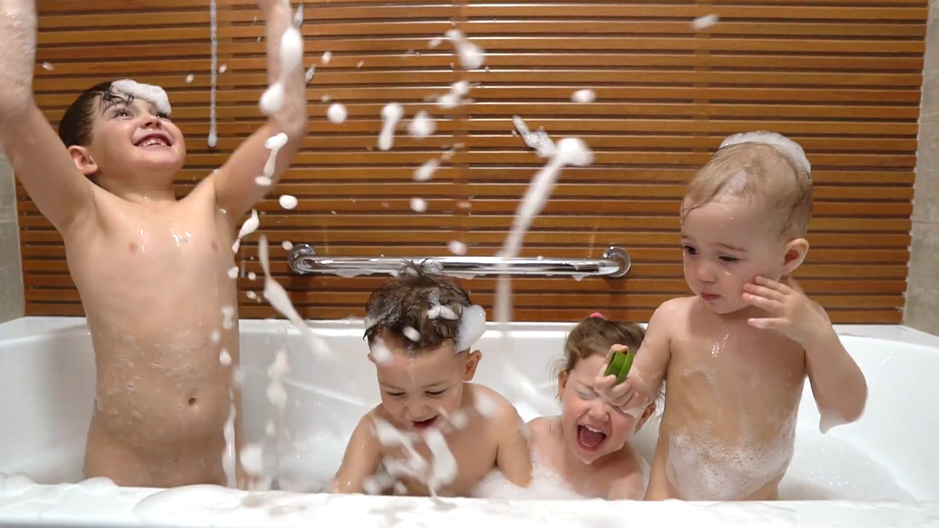 Happy siblings: four little children playing together with water by taking bath in bathtub at home Stock Video Footage 00:08 SBV-338302150 - Storyblocks